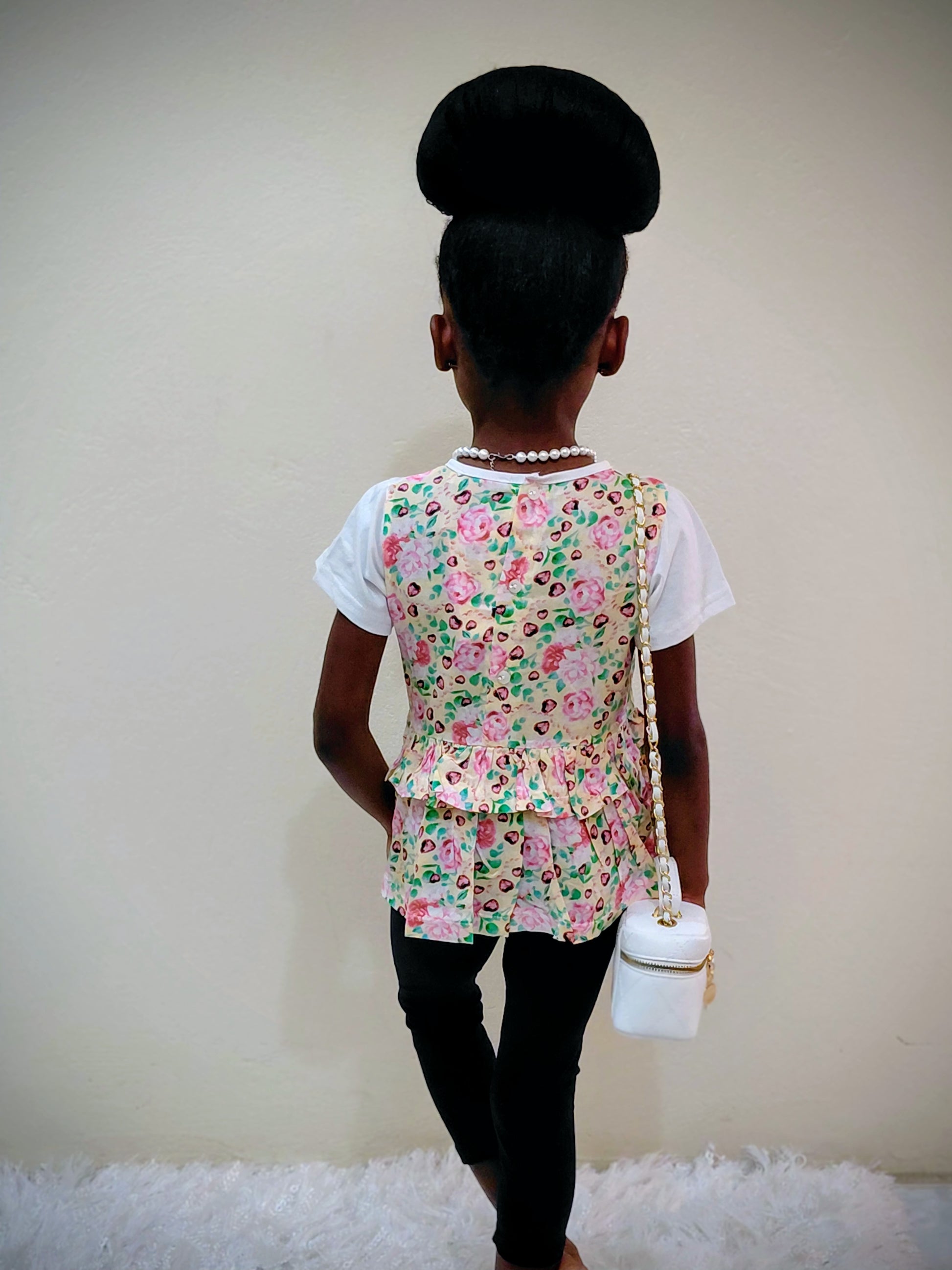 Floral white top w black leggings